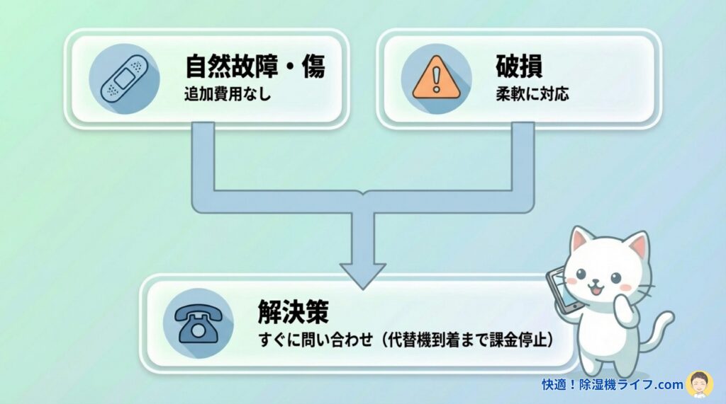 普通に日常生活で使っていてついた傷や汚れ、自然故障であれば、追加の修理費用を請求されることはありません。