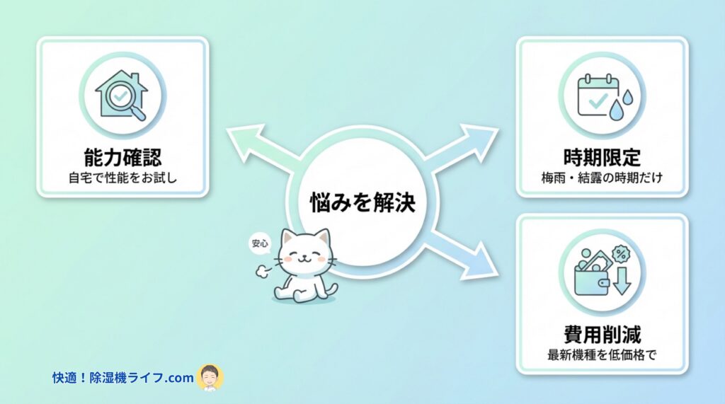 購入前に「実際の除湿能力」を自宅で確かめられる