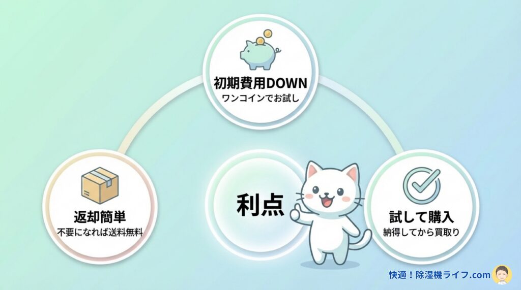 GYMGATEでレンタルする最大の魅力は「除湿機を購入前に自宅で試せる安心感」にあります。