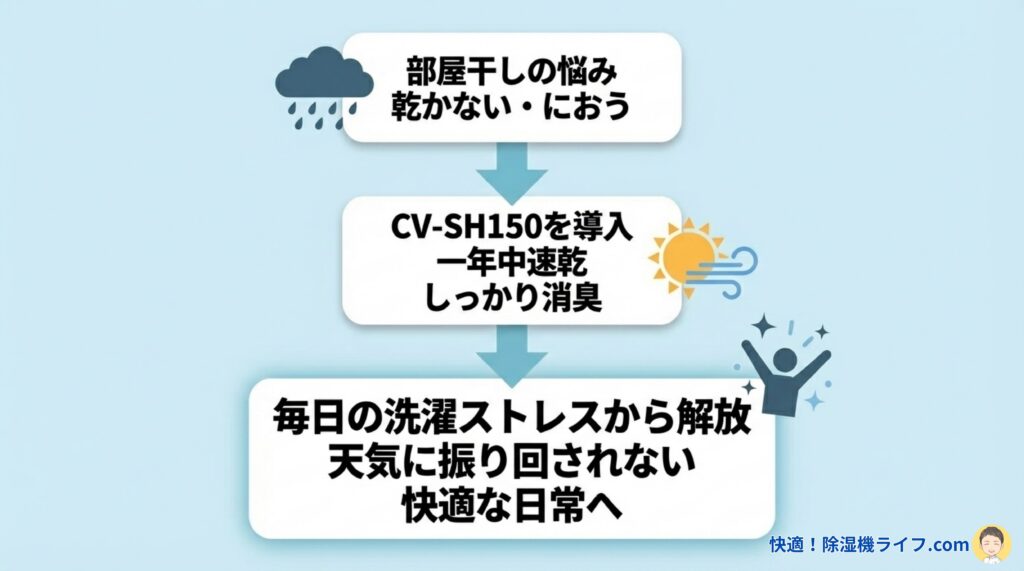 【まとめ】シャープ CV-SH150で毎日の部屋干しストレスから解放されよう!