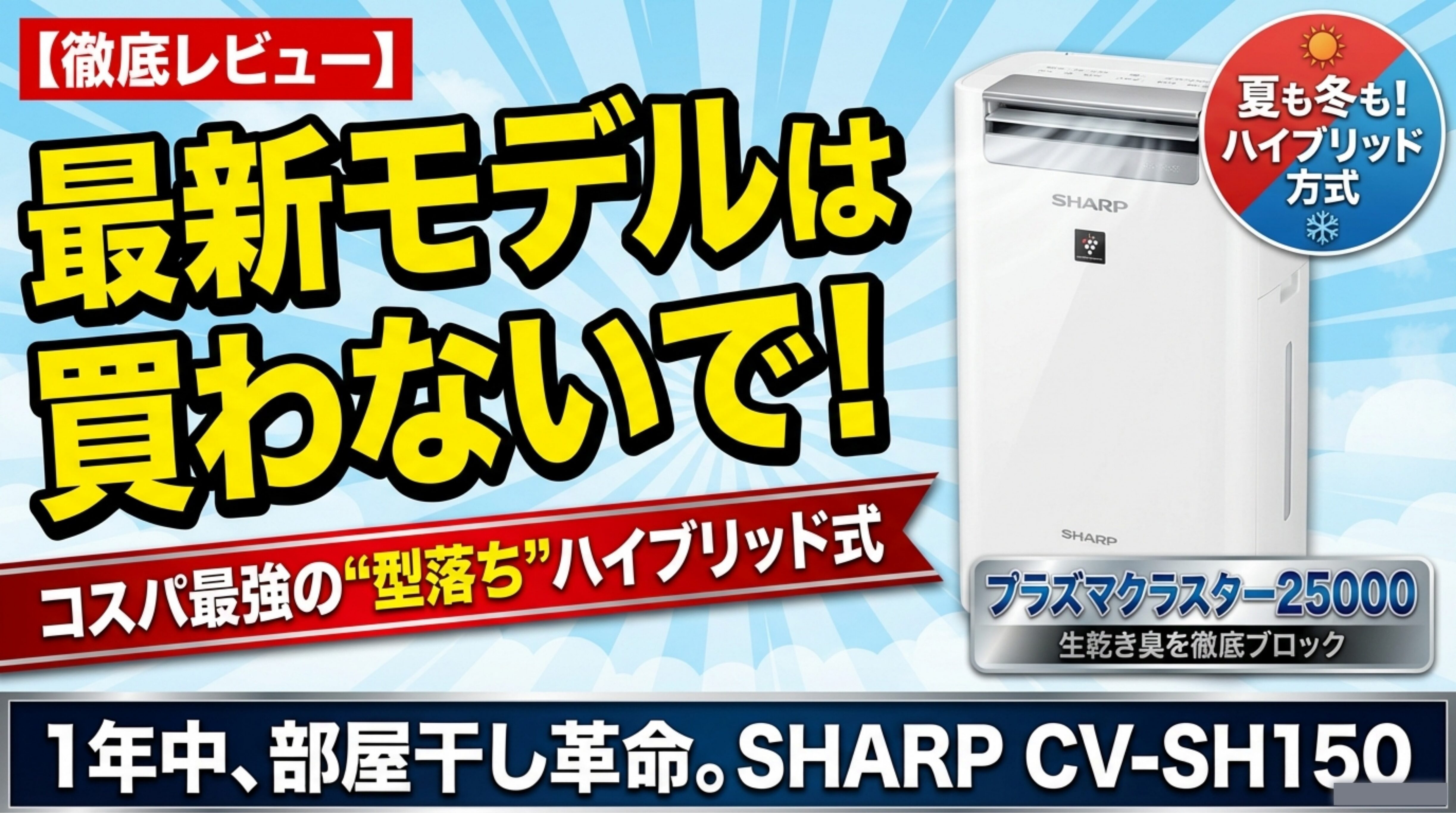 今回は、シャープのハイブリッド式衣類乾燥除湿機「CV-SH150」について、口コミや評判を交えながらレビューしました。